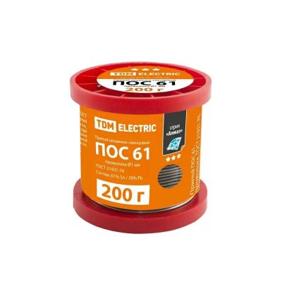 Припой с канифолью и флюсом Sn60% Pb40%, TDM Electric, 16 г, диаметр 1 мм, пластиковая туба, серия Алмаз, SQ1025-0205