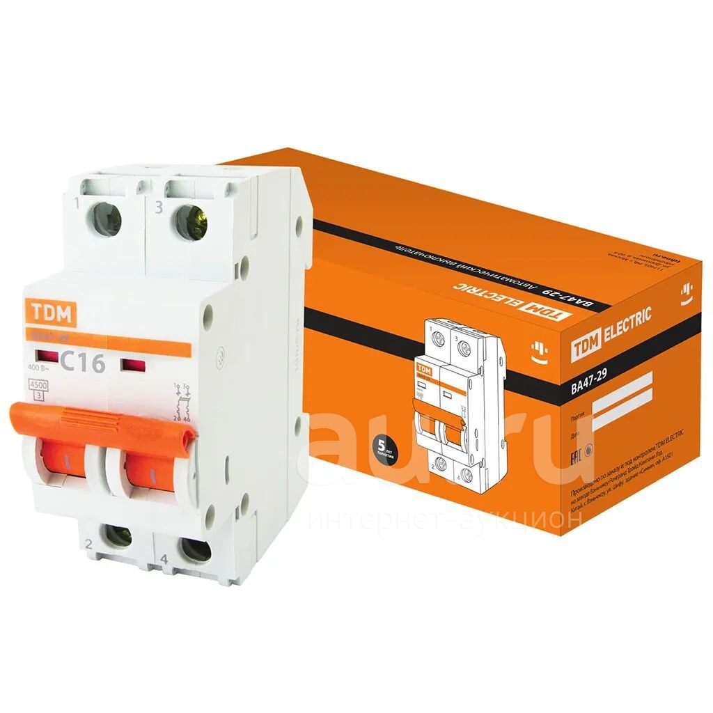 Автоматический выключатель TDM Electric, ВА47-29, 2 полюса, 16, 4.5 кА, С, SQ0206-0093