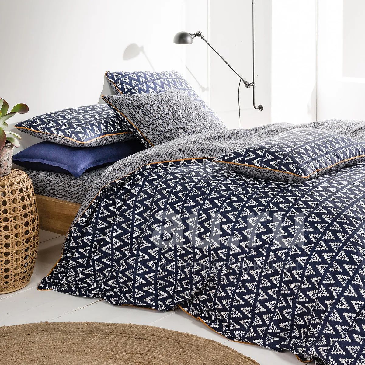 Пододеяльник с рисунком POPAYAN. Повторяющиеся визуальные эффекты и идеальные оттенки, постельное белье POPAYAN придаст нотку экзотики.Хлопок является неотъемлемой частью нашей повседневности. Его любят за эластичность и мягкость. Простой в уходе, он идеален для детских и взрослых кроватей!Описание • 100% хлопок • 57 нитей/см² • Прямой низ с пуговицами • Пододеяльник с рисунком: рисунок серого и синего цветов на лицевой стороне, сочетающийся микрорисунок на оборотной стороне • Отделка кантом оранжевого цветаУход • Температура стирки: 60°С • Стирая белье при 40°С вместо 60°С, вы тратите меньше электроэнергииРазмеры • 140 x 200 см: 1-сп. • 200 х 200 см: 1-2-сп. • 240 х 220 см: 2-сп. • 260 х 240 см: 2-сп.Наволочки продаются отдельно. • OEKO-TEX® Standard 100. Сертификация OEKO-TEX® Standard 100 контролирует использование вредных веществ в текстильных изделиях через независимый и международный знак качества.