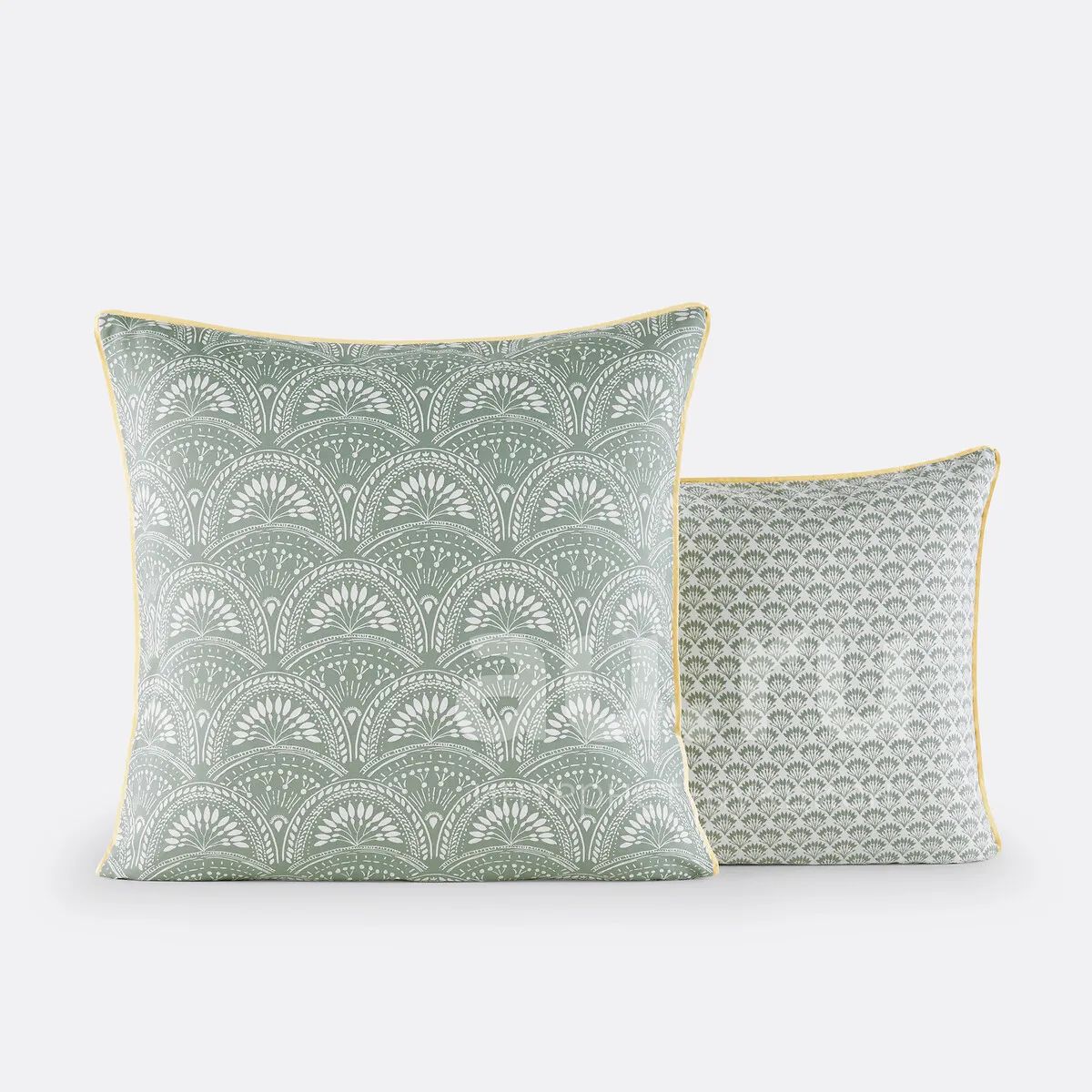 Наволочка качество Best из 100% стираного хлопка Jaipur vert, элегантная и изысканная, в стиле арт деко. Её принт в виде пальмовых листьев с контрастной окантовкой придаст стильный вид вашей комнате. А 100% стираный хлопок Jaipur обеспечит вам мягкость и комфорт на каждый день.Описание • 100% стираный хлопок • 57 нитей/м2: чем больше нитей/см², тем выше качество ткани • Знак качества Qualité Best представляет лучшее из La Redoute. Благородные материалы и великолепное исполнение гарантируют высокое качество изделия. • Лицевая сторона с принтом пальмовые листья/оборотная сторона - с мелким принтом • Отделка бейкой • Форма мешкаНайдите всю коллекцию jaipur зеленого цвета на laredoute.ru. На протяжении года внесите свои нотку индивидуальности, сочетая коллекцию Jaipur vert с нашей коллекцией однотонного постельного белья из стираного хлопка ScenarioУход • Температура стирки 60° Размеры • 50 x 70 см: прямоугольная наволочка • 63 x 63 см: квадратная наволочкаДополнительная информация: • Это изделие со знаком STANDARD 100 by OEKO-TEX® – сертификат № CQ 1102/4 IFTH подтверждает, что процесс изготовления строго контролируется, и изделие безопасно для вашей кожи. • STANDARD 100 от OEKO-TEX® – первый знак качества, отвечающий потребностям покупателей в области экологии человека. Он гарантирует отсутствие в сертифицированных изделиях вредных веществ, представляющих угрозу для здоровья.