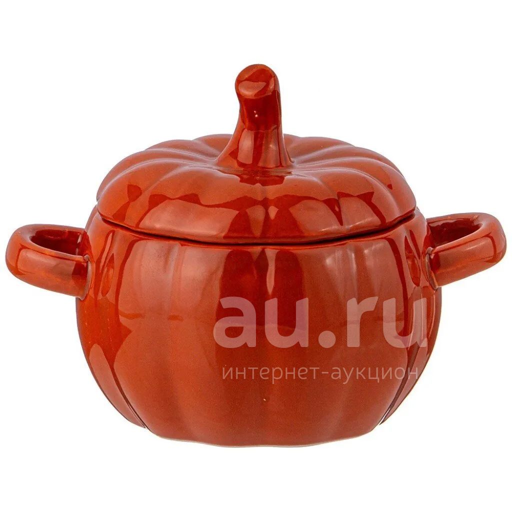 Форма для запекания керамика, 17.3х13х12.7 см, 0.6 л, с крышкой, Agness, Il Raccolto Тыква, 490-468