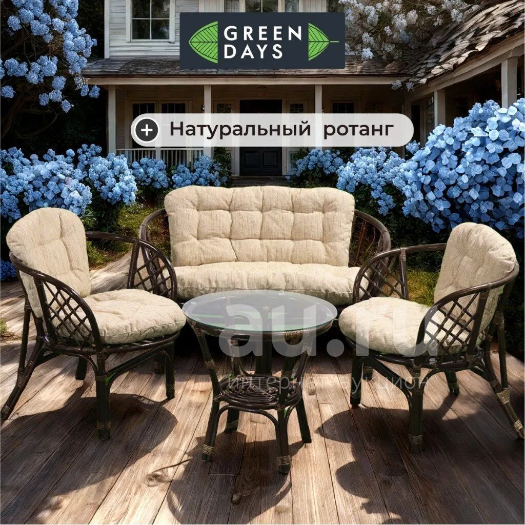 Мебель садовая Green Days, Мальдивы, кофейная, стол, 55х55х56 см, 2 кресла, 1 диван, подушка бежевая, 110 кг, 114х73х65 см, IND12