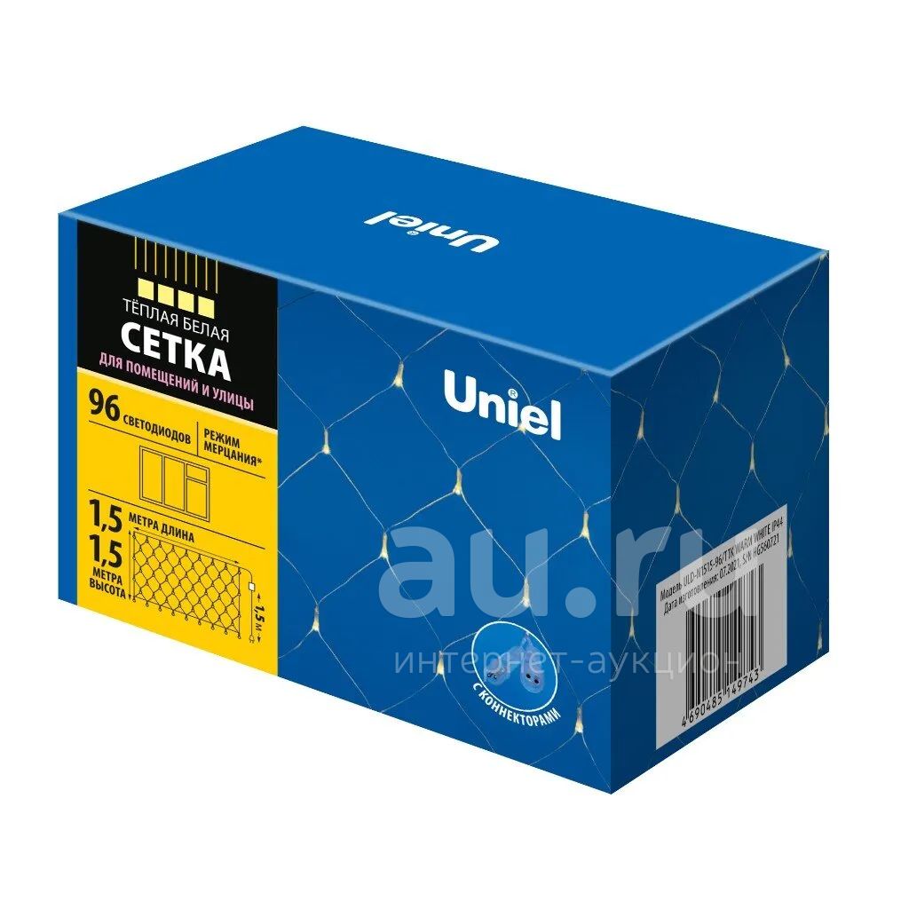 Сетка светодиодная 96 ламп, 1.5х1.5 м, Uniel, теплый белый свет, с эффектом мерцания, соединяемая, сетевая, UL-00008418