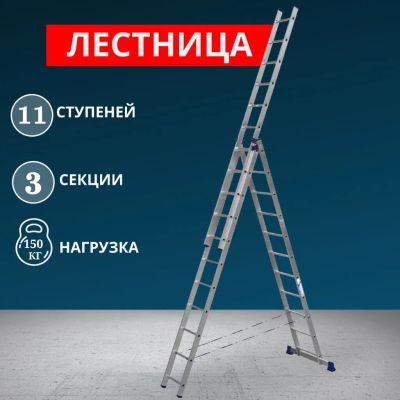 43руб.Лестница 2 секции, 11 ступеней, алюминий, 5.06 м, 150 кг, Alumet, 5211