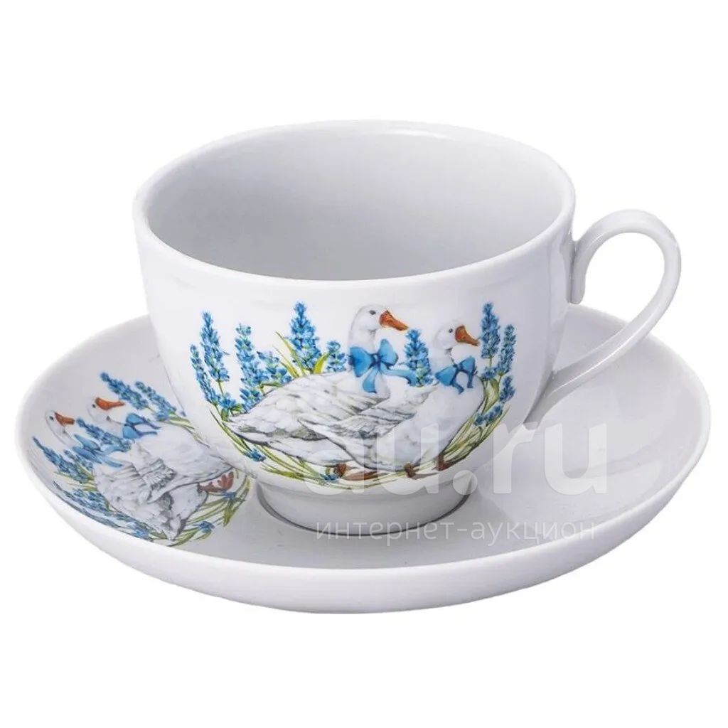 Чайная пара фарфор, 2 предмета, на 1 персону, 275 мл, Дулевский фарфор, Гранатовый Гуси, 095002