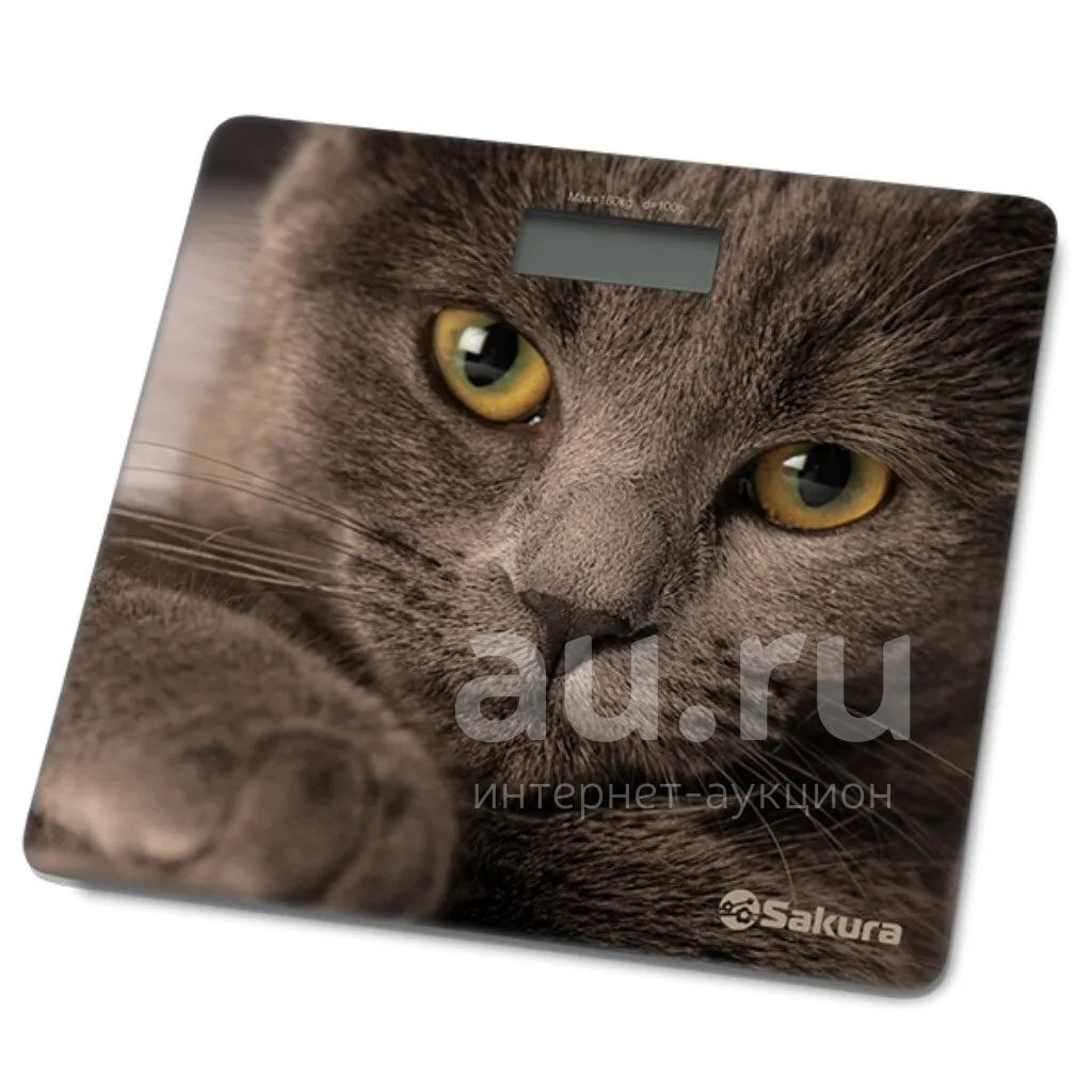 Весы напольные электронные, Sakura, SA-5065CT UltraSlim, стекло, до 180 кг, 30х30х1.8 см, Кошка