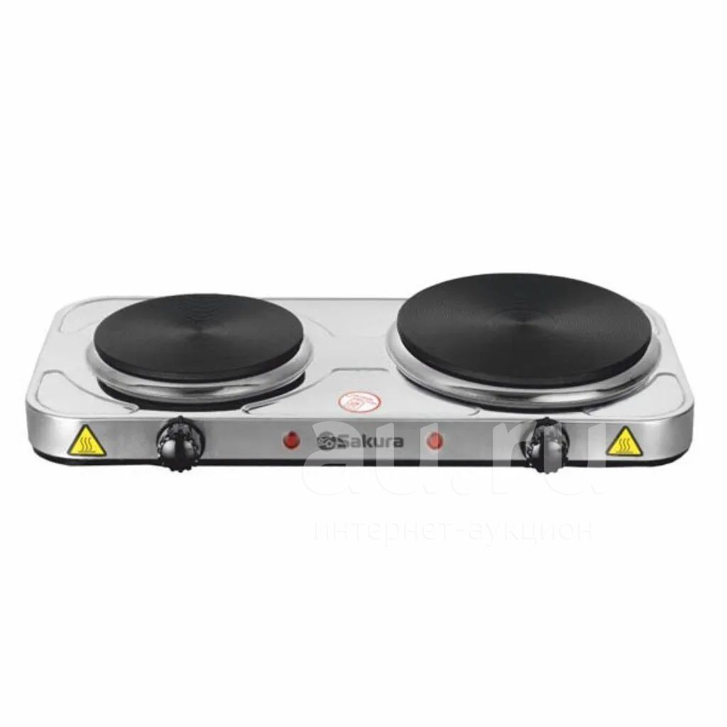 Плита электрическая Sakura, ПЭ-10Н, 2500 Вт, 2 конфорки, диск, чугун, механическая, переключатель поворотный, защита от перегрева, нержавеющая сталь