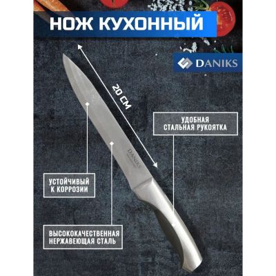 219руб.Нож кухонный Daniks, Классик, для мяса, нержавеющая сталь, 20 см, рук...