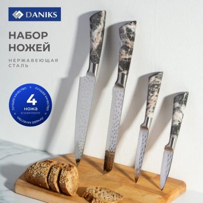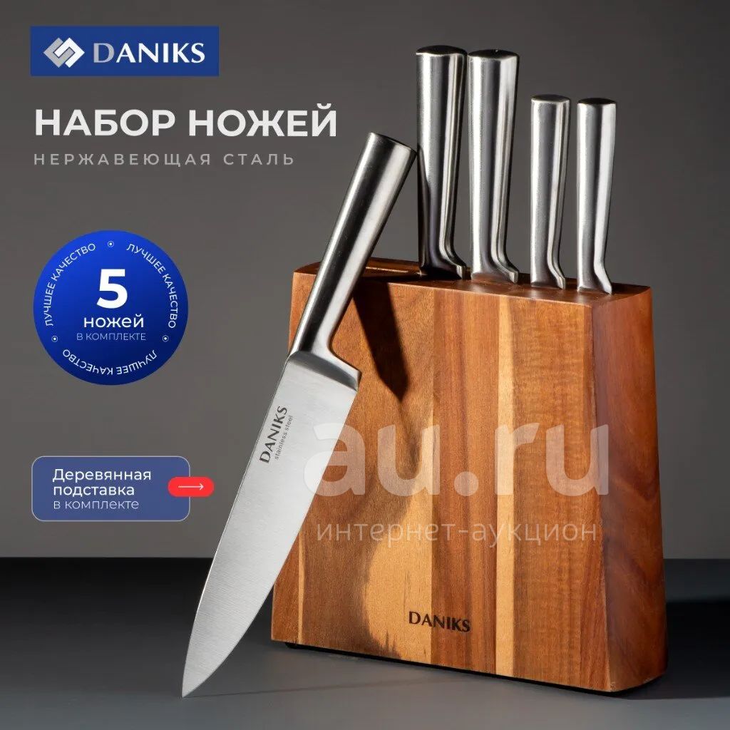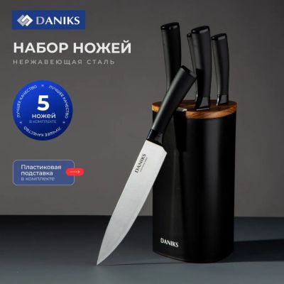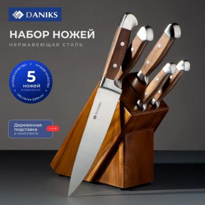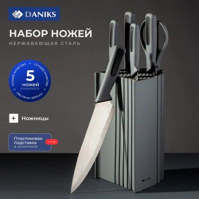 Идеальный выбор для современной кухни — набор ножей Daniks Lovina YW-A155-2 из 6 предметов с подставкой из натурального бамбука. Комплект включает пять профессиональных ножей: шеф-нож, нож для овощей, универсальный, хлебный и разделочный нож, а также стильную подставку. Лезвия из высококачественной стали обеспечивают долговечную остроту и легкость в резке, а цельнометаллическая конструкция и рукоятки из нержавеющей стали гарантируют надежность и комфорт при ежедневном использовании. Подставка из бамбука не только практична, но и станет стильным акцентом на любой кухне, подчеркивая современный интерьер.
