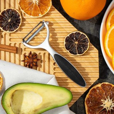 Вертикальная овощечистка Daniks Laguna – Ваш незаменимый помощник на кухне. Благодаря лезвию с функцией поворота на 90 градусов из высококачественной нержавеющей стали она легко справится с любыми овощами и фруктами.