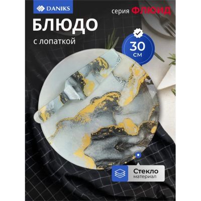 129руб.Менажница стекло, 29 см, круглая, Daniks, Флюид, бежевая