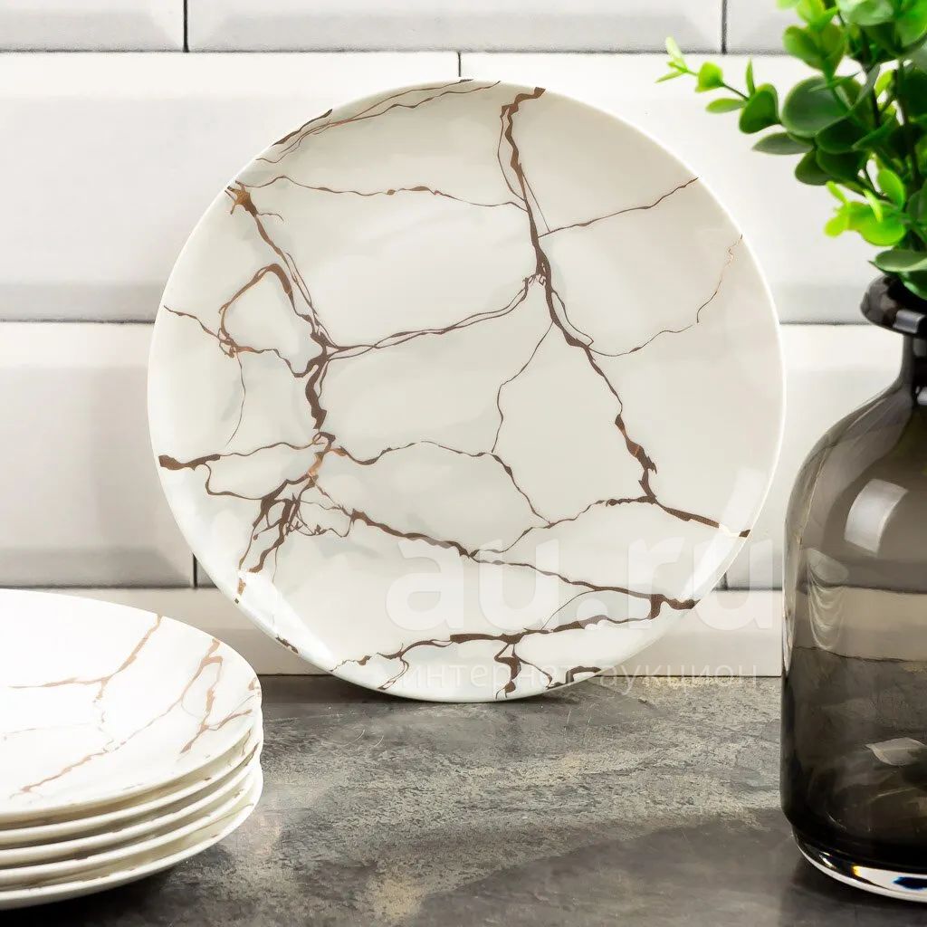 Набор керамических тарелок Daniks «Белый мрамор», 6 шт, 20 см — стиль для сервировки, выгодное решение для дома и подарка. Прочность, эстетика, универсальность.