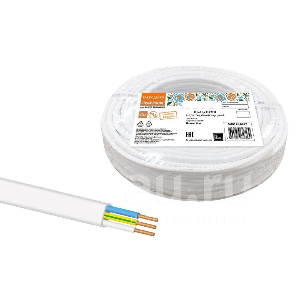 Провод ПУНП, 3х2.5 мм², 10 м, медь, гибкий, универсальный, РТ, ПУСП, РЭМЗ, ТУ, белый, TDM Electric, Народная, SQ0126-0017