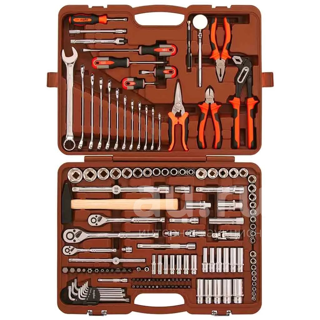 Универсальный набор инструмента – «рабочее место» профессионального механика. Комплектация набора построена на трех системах сборного слесарно-монтажного инструмента, что обеспечивает производство работ по обслуживанию изделий точной механики, электроники и бытовой техники, где рабочая зона ограничена и отсутствуют серьезные нагрузки; ремонта агрегатов автомоторной техники, где требуются компактные размеры инструмента с возможностью передачи серьезных рабочих нагрузок и инструмент с присоединительным квадратом 1/2"DR, являющийся основой, на которой строится вся система сборного слесарно-монтажного инструмента. Вспомогательные инструменты и аксессуары значительно расширяют область применения набора и заметно облегчают выполнение работ.