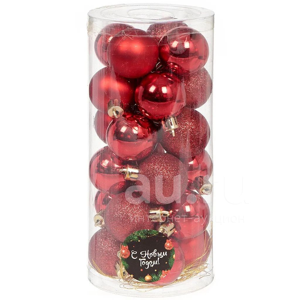 Елочные шары 24 шт., красные, 4 см — стильный и безопасный декор для дома, дачи и подарка. Небьющийся пластик, блестящее покрытие, выгодный набор.