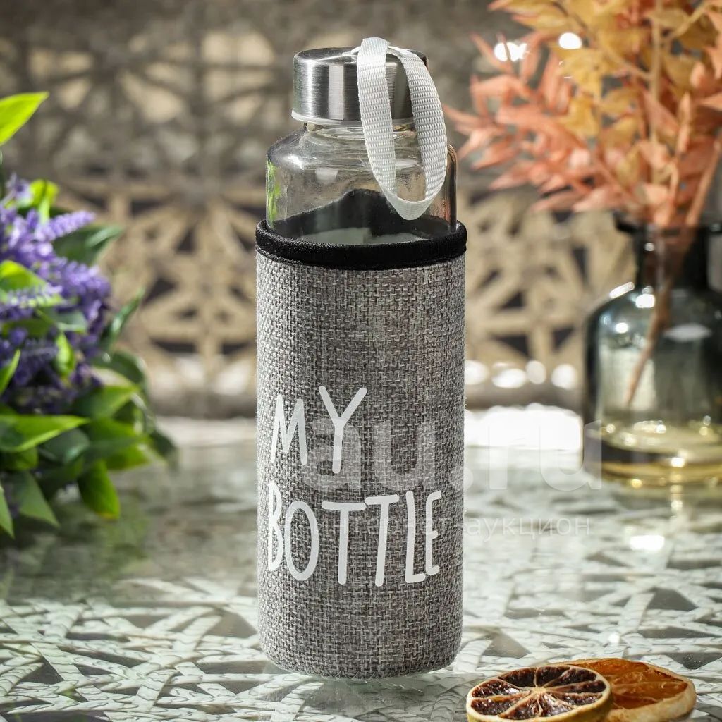 Бутылка питьевая стекло, 400 мл, с крышкой, в чехле, Y6-10126, серая