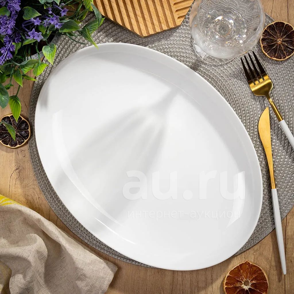 Блюдо стеклокерамика, овальное, 24х33 см, белое, Бэль, Daniks, LPKYP-130