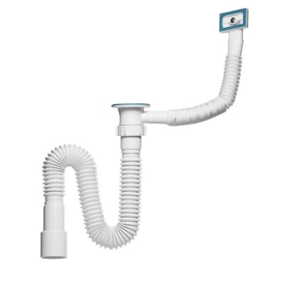 Сифон для мойки, 650 мм, 1" 1/2, 40х40/50, полипропилен, с выпуском, с переливом, круглый перелив, с отводом, с гофрой, Orio, А-5011