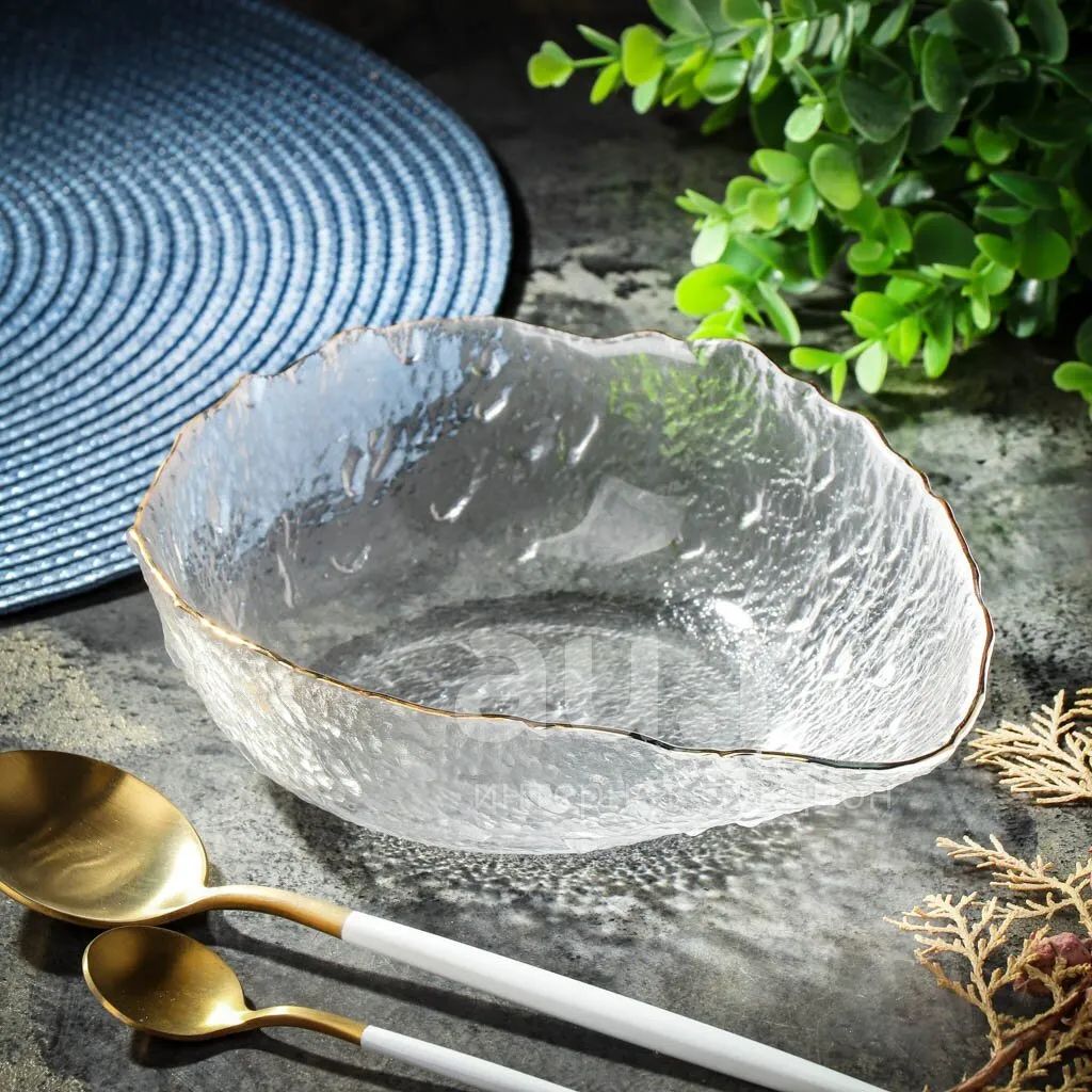 Салатник стекло, фигурный, 5 см, 0.5 л, отвод золотом, 15х20х5см, Алмаз, Y6-10092