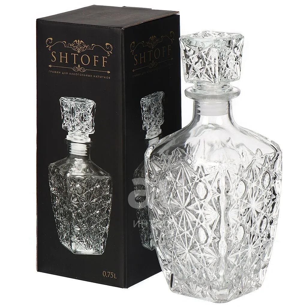 Штоф выполнен из прочного высококачественного стекла и декорирован рельефом. Он излучает приятный блеск и издает мелодичный звон. Штоф сочетает в себе изысканный дизайн с максимальной функциональностью.