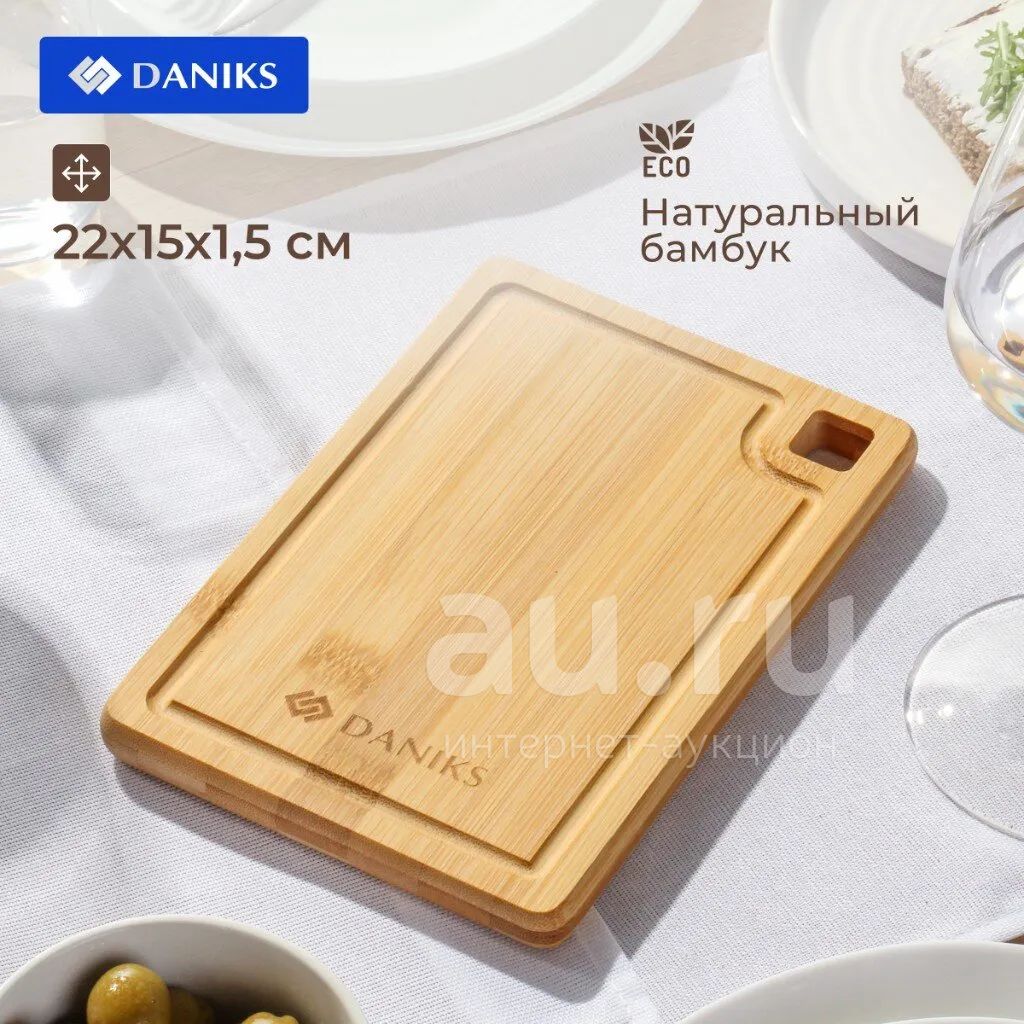 Доска разделочная бамбук, 22х15х1.5 см, бежевая, прямоугольная, Daniks, CB35422B