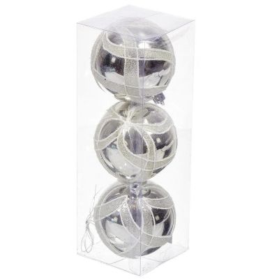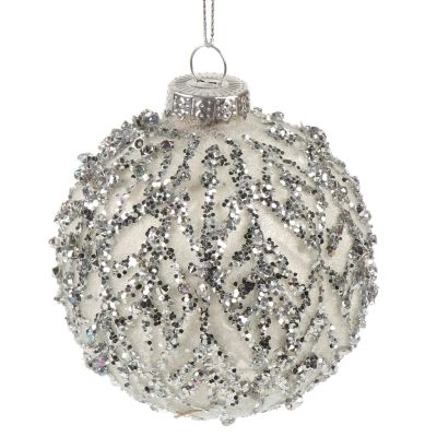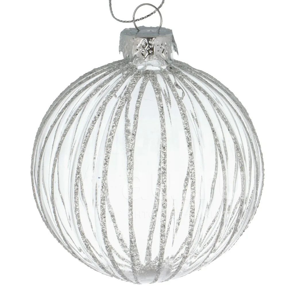 Елочный шар Грани, прозрачный, серебро, 8 см, стекло, F010020