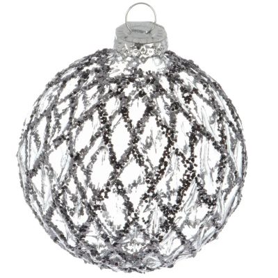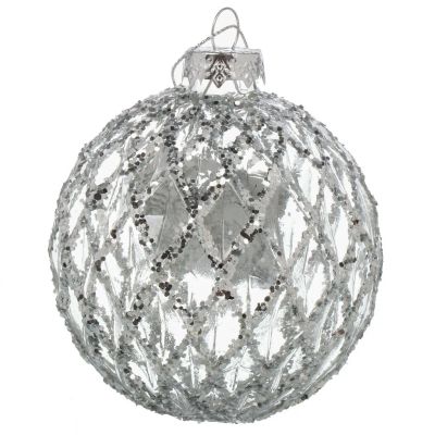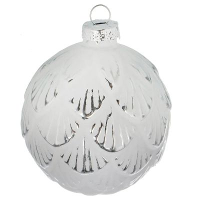 Елочный шар Грани, белый матовый, 8 см, стекло, F010018