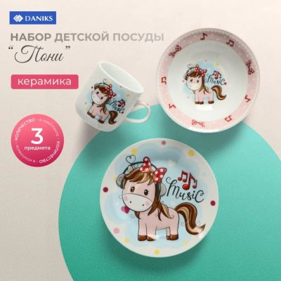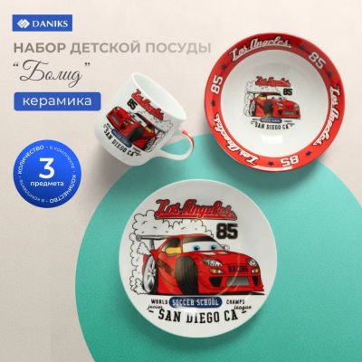 Набор посуды керамика, 3 шт, Крутой гонщик, тарелка 18см, салатник 15см/350мл, кружка 230мл, Daniks, C622