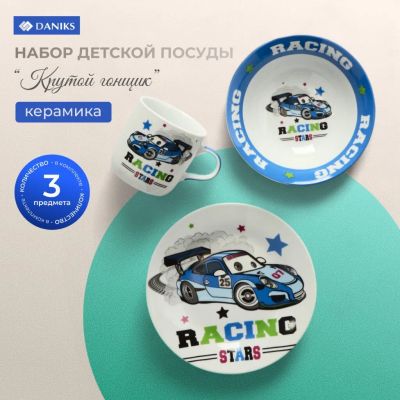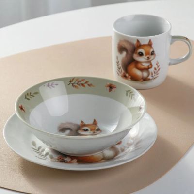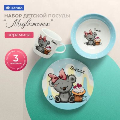 Набор посуды керамика, 3 шт, Балерина, тарелка 18 см, салатник 15 см, кружка 230 мл, Daniks, C835