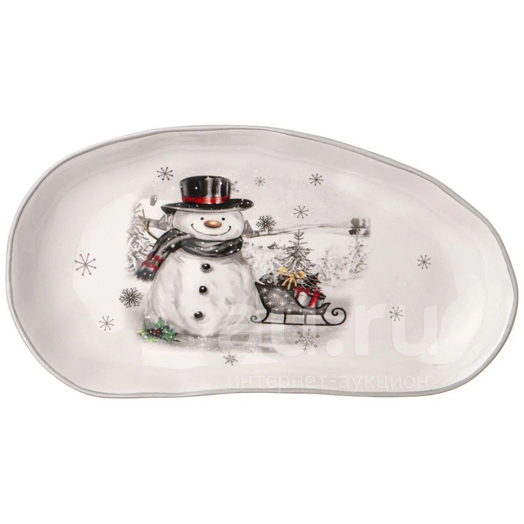 Тарелка закусочная, керамика, 23.3х12.8х3 см, овальная, С Новым годом!, Agness, 358-2253
