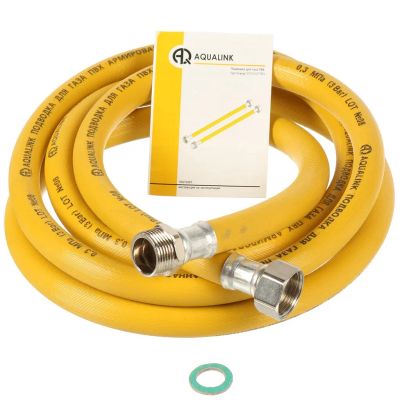 Газовая армированная подводка AquaLink представляет собой шланг с каркасом и оплеткой из ПВХ. Внутренний слой для увеличения прочности укреплен полиэфирной нитью. Такую подводку можно купить для подключения бытовых приборов к сетевому газопроводу или к баллону со сжиженным газом. Газовая подводка из ПВХ, благодаря особенностям материала, не требует дополнительной установки диэлектрической вставки.