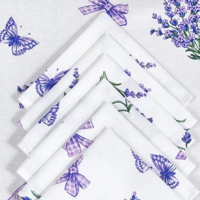 889руб.Набор столового текстиля скатерть 180х145 см + 6 салфеток 35х35 см, 100% хлопок, рогожка, АртДизайн, Сиреневая дымка