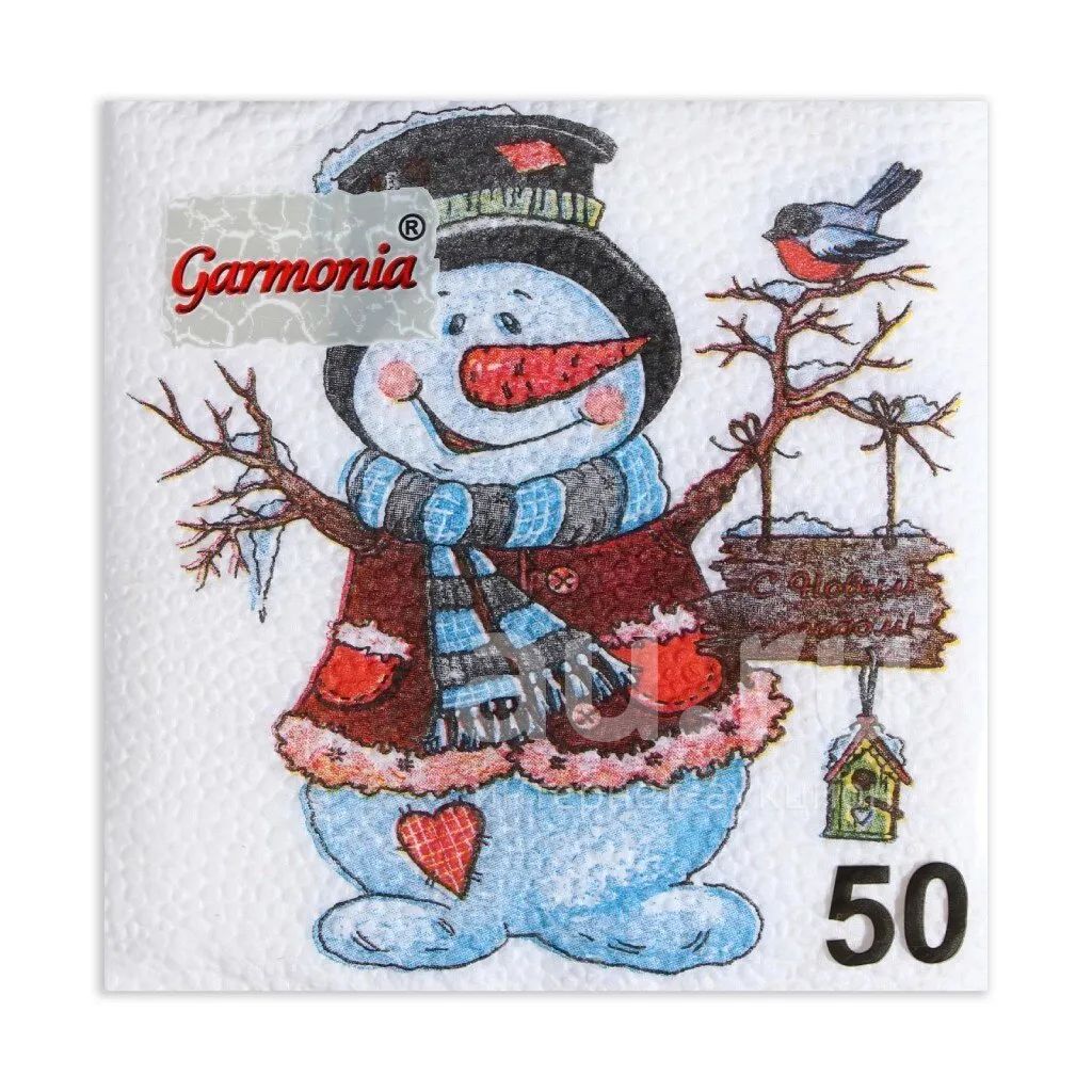 Салфетки бумажные Гармония Цвета, Снеговичок, 50 шт, 24х24 см