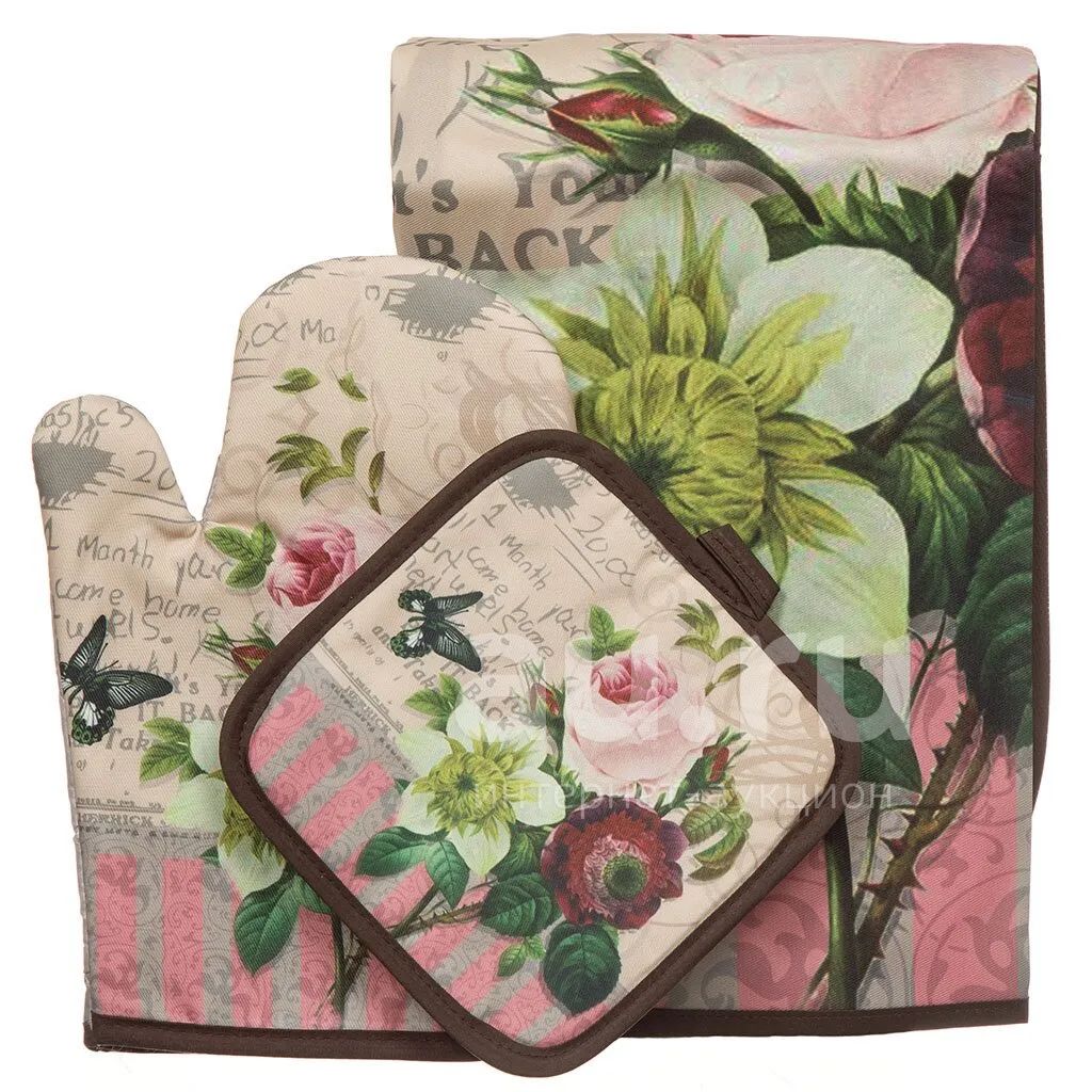 Набор кухонный 3 шт, 60х80см+17х27см+17х17см(фартук,варежка,прихватка), 100% полиэстер, Романтика, Y3-829