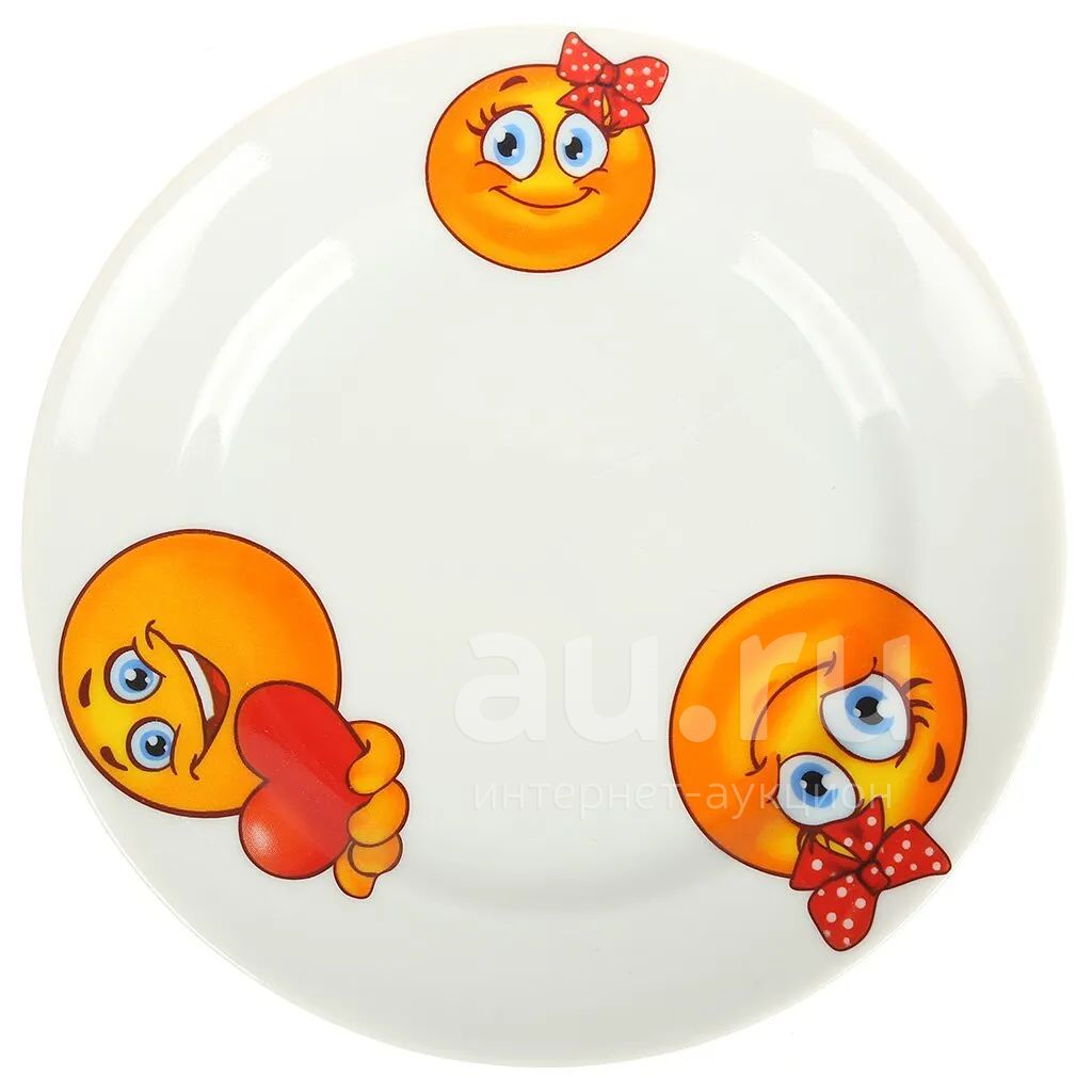 Тарелка десертная, керамика, 17 см, круглая, Идиллия Смайлики 2, Добрушский фарфоровый завод, 4С0558