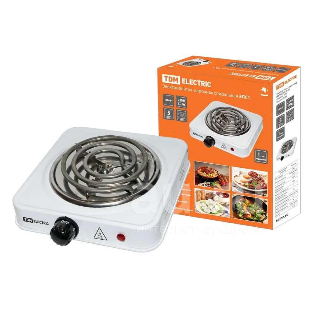 Плита электрическая TDM Electric, ЭПС1-ОТ, 1000 Вт, 1 конфорка, спираль, эмаль, механическая, переключатель поворотный, белая