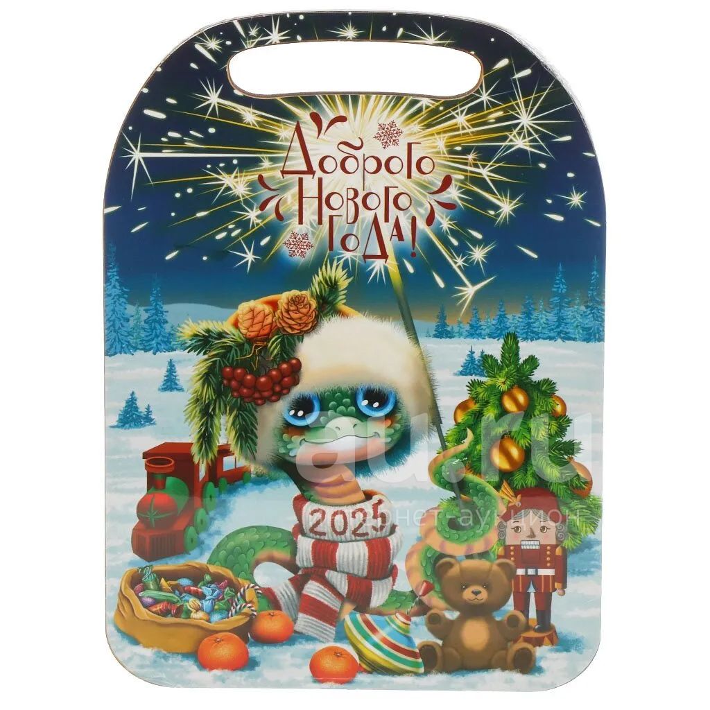 Доска разделочная дерево, 29х21х0.5 см, с ручкой, прямоугольная, НГ 2025, К-279