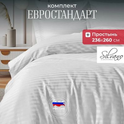 Набор для спальни евро, 230 х 250 см, 2 наволочки 50х70 см, 100% полиэстер, Cleo, Velluto Полоска, серый, 230/003-VEL