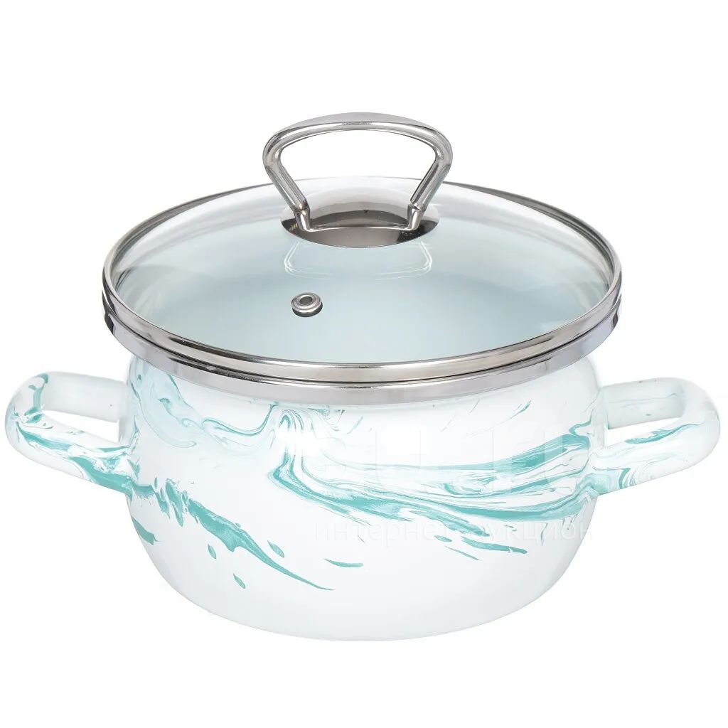 Кастрюля эмалированная сталь, 1.5 л, с крышкой, крышка стекло, Сантэкс, Шейк бело-бирюзовая, 1-2415111, индукция