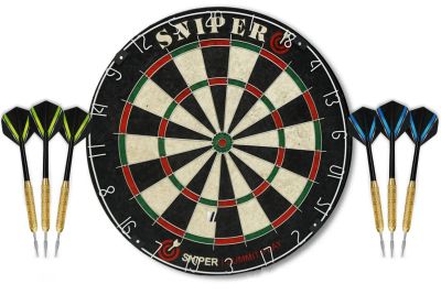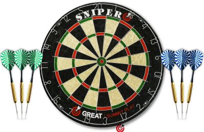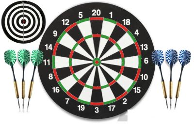 комплект для игры в дартс elit-play суперпрофессионального уровня, соответствует турнирным требованиям.материал мишени – кенийское сизалевое волокно. острый нож границы секторов, вращающееся кольцо нумерации. комплект включает собранные дротики с латунным покрытием высокого качества 6 шт x 18 гр (3 дротика с синим хвостовым оперением и 3 с зеленым хвостовым оперением), а также крепление для подвешивания к стене.комплект elit-play идеален для клубов, развлекательных заведений, проведения спортивных турниров. ? мишени: 45 см / 18 quot;толщина мишени: 3 см / 1,5 quot;материал мишени: африканский сизальв комплекте: 6 дротиков весом 18 гр., покрытие латунноенастенное крепление