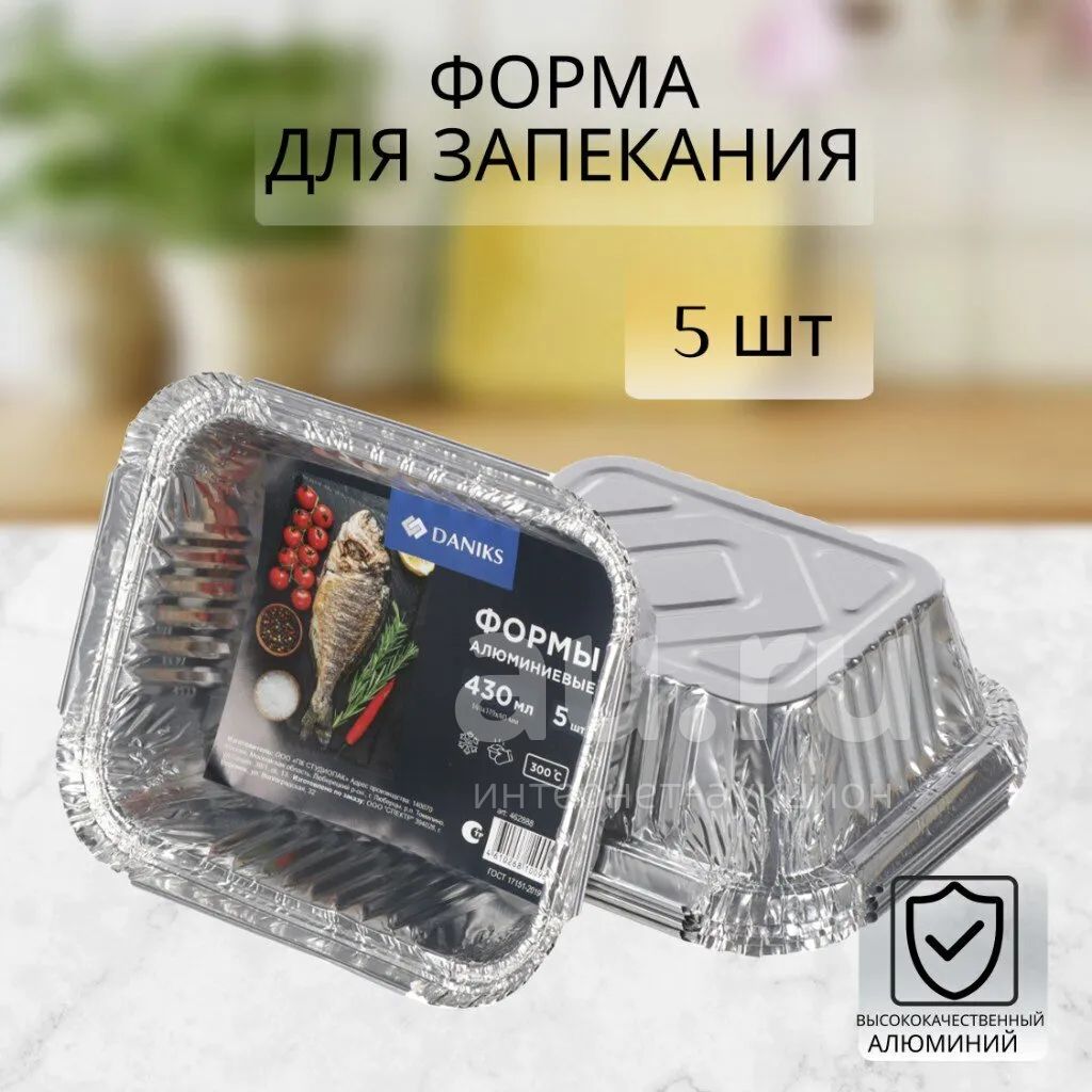 Форма для запекания алюминий, 5 шт, 14.4х11.9х4 см, 0.43 л, прямоугольная, Daniks, 24L