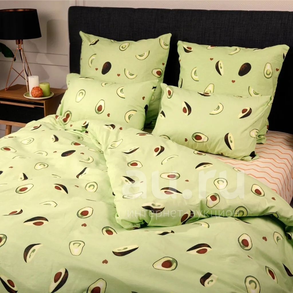 Постельное белье евро, простыня 200х215 см, 2 наволочки 50х70 см, пододеяльник 200х215 см, Ночь нежна, бязь, Авокадо