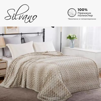 Плед 2-спальный, 180х200 см, велсофт, 100% полиэстер, Silvano, Листья, бежевый, SР-363/1