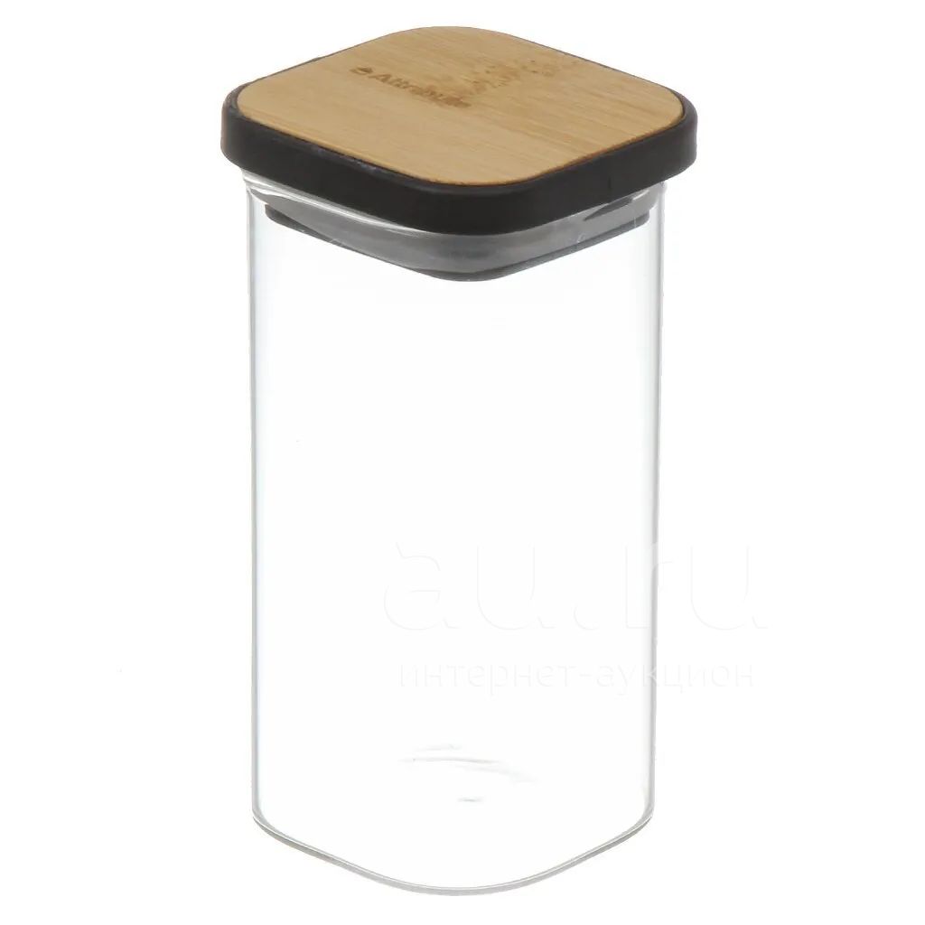 Банка для сыпучих продуктов, стекло, 0.3 л, 9.4х9.4х12.5 см, с крышкой, квадратная, Attribute, Bamboo, AJB106