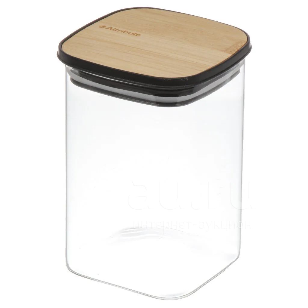 Банка для сыпучих продуктов, стекло, 1 л, 9.4х9.4х15.2 см, с крышкой, квадратная, Attribute, Bamboo, AJB104
