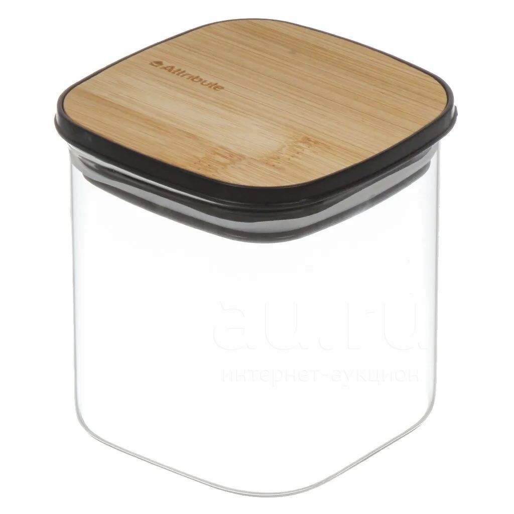 Банка для сыпучих продуктов, стекло, 0.65 л, 9.4х9.4х10.7 см, с крышкой, квадратная, Attribute, Bamboo, AJB103