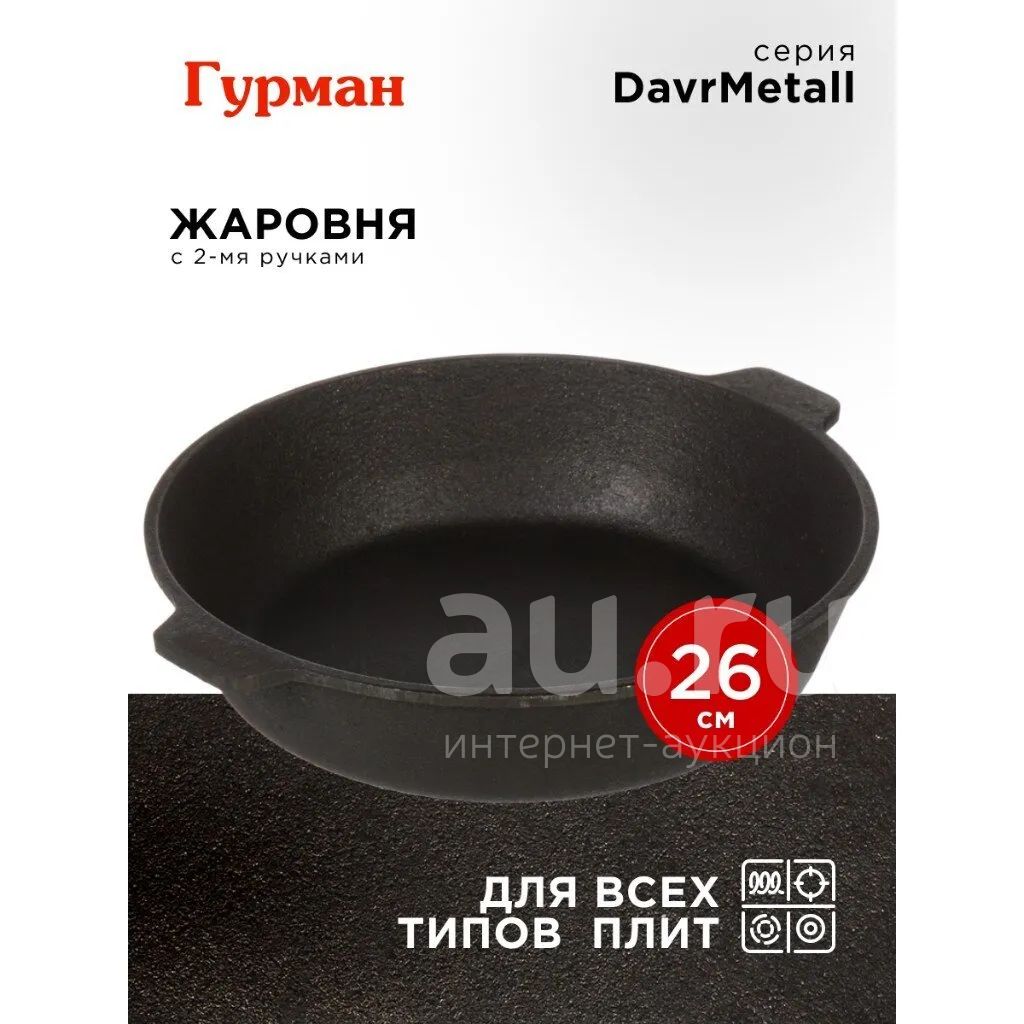299руб.Жаровня чугун, 26 см, с двумя ручками, Гурман, DavrMetall, индукция