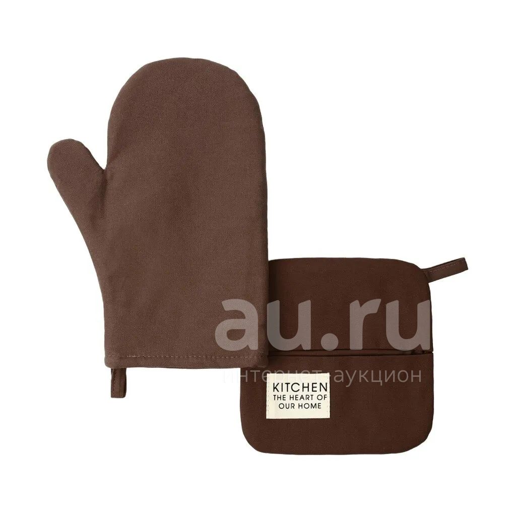 Набор кухонный 2 шт, 29х18см + 19х19 см (варежка, прихватка), 100% хлопок, саржа, Этель, Kitchen, коричневый