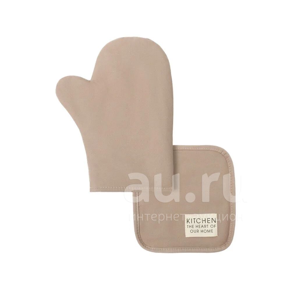 Набор кухонный 2 шт, 29х18см + 19х19 см (варежка, прихватка), 100% хлопок, саржа, Этель, Kitchen, бежевый