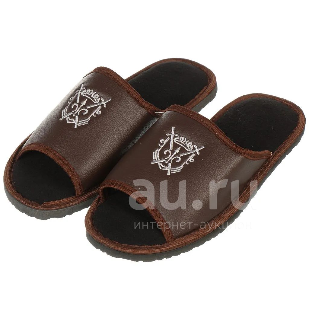 Тапки для мужчин, эко-кожа, коричневые, р. 42, открытые, King